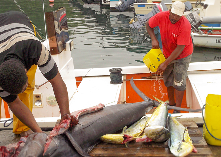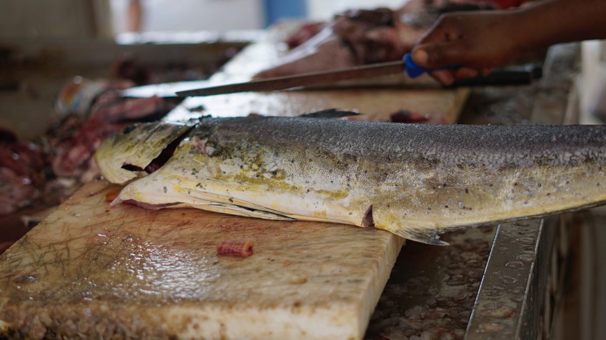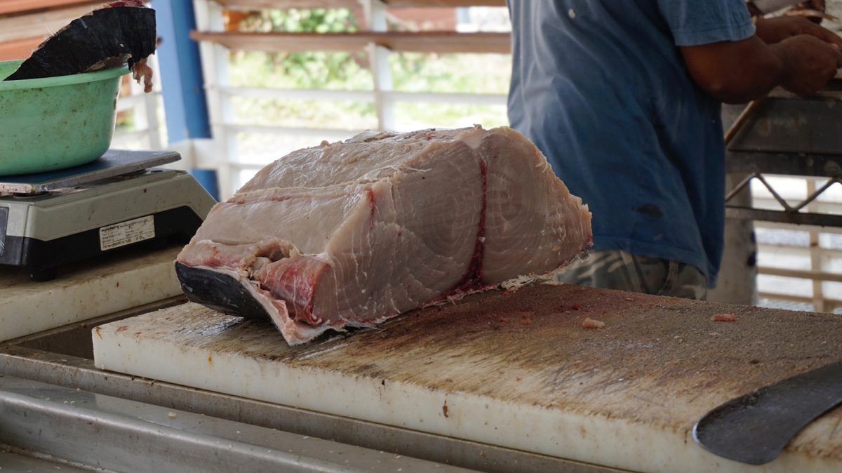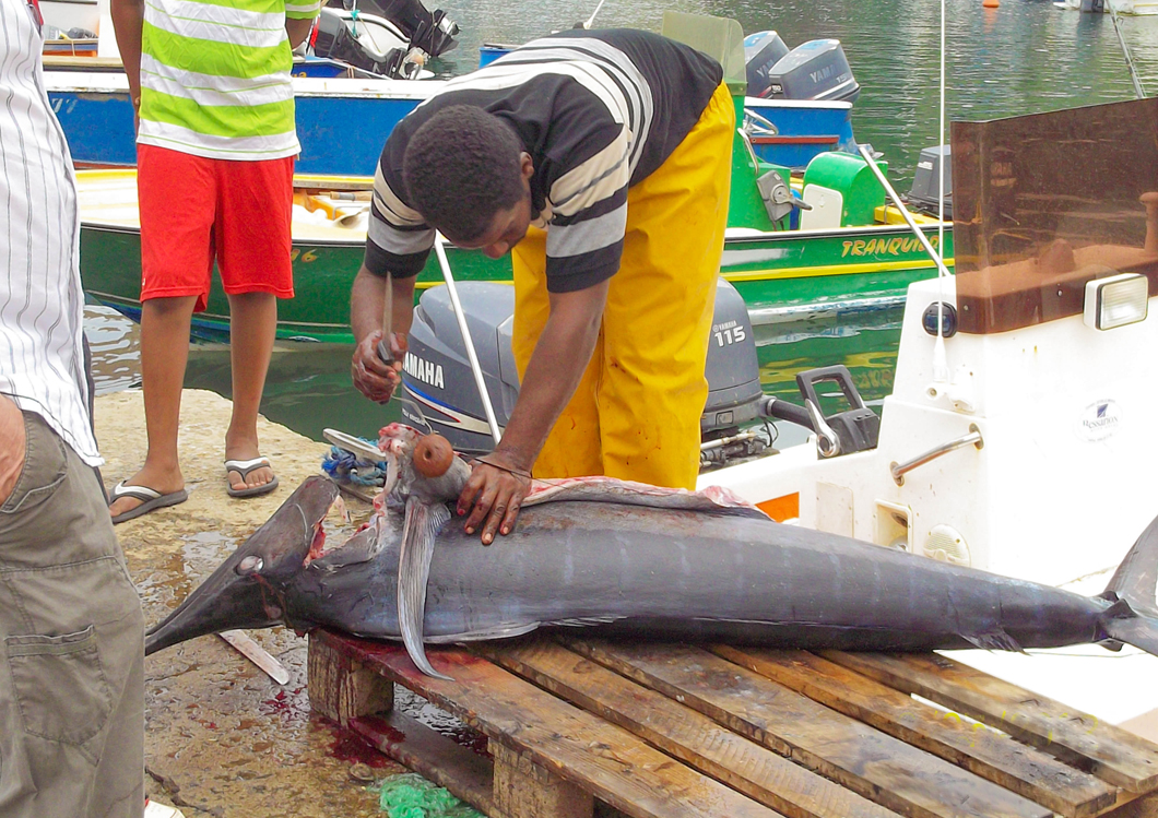 Si vous ne savez pas quoi prendre, je vous conseille incontestablement le marlin, pour 10 euros les pécheurs vous donnent une bonne darne d’un kilo, on dirait une entrecôte de la mer, il n’y a qu’une grosse arrête centrale et c’est assez facile à cuisiner. Vous pouvez le faire cru (voir la recette de Sandra dans les commentaires) avec une marinade de citrons, oignons, cive et piments végétariens ou encore grillé au barbecue.