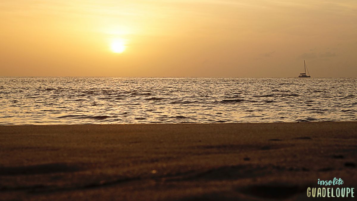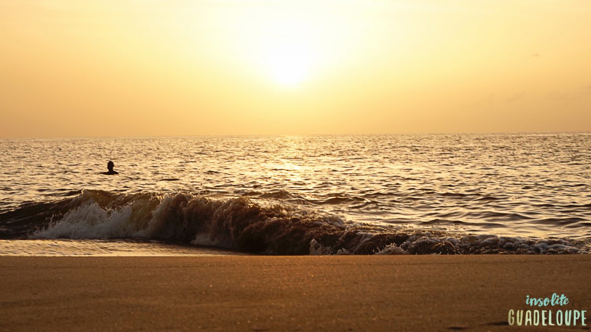 La plage de Leroux comme toutes les plages de la côte sous le vent offre un panorama exceptionnel sur le coucher de soleil (contrairement aux plages de la Grande-Terre).